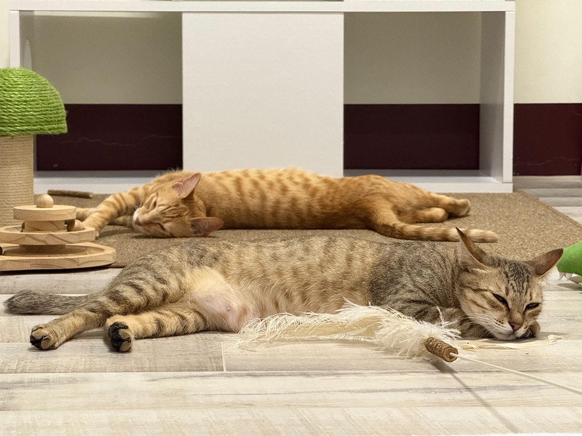 因為老屋磁磚地板出現爆裂問題,剛好又在那段時間收留了幾隻浪貓,我們決定為牠們打造一個更安全、舒適的生活空間。多方比較後,選擇了德國森薩複合式木地板。整個安裝過程比想像中順利,師傅們動作俐落、態度親切,短短一天就完成二、三樓鋪設,現場乾淨整潔,毫無施工痕跡。新地板一鋪好,毛孩們便興奮地在上面打轉,彷彿也察覺到家的改變。